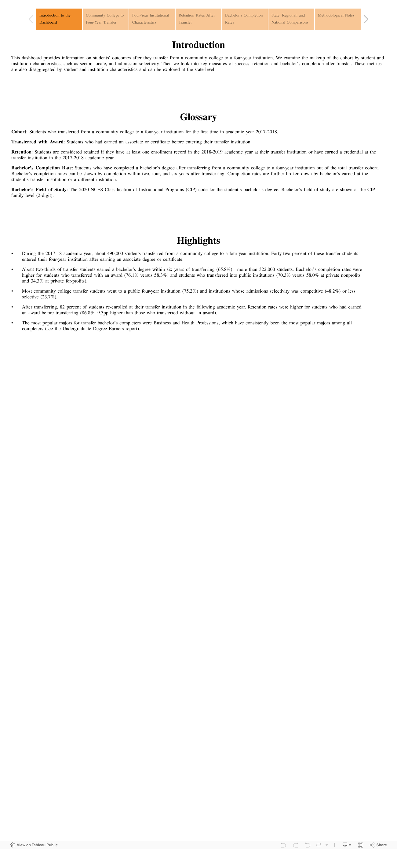 Tracking Transfer Entering Four-Year College Cohort Dashboard Also see the Entering Community College Cohort Dashboard