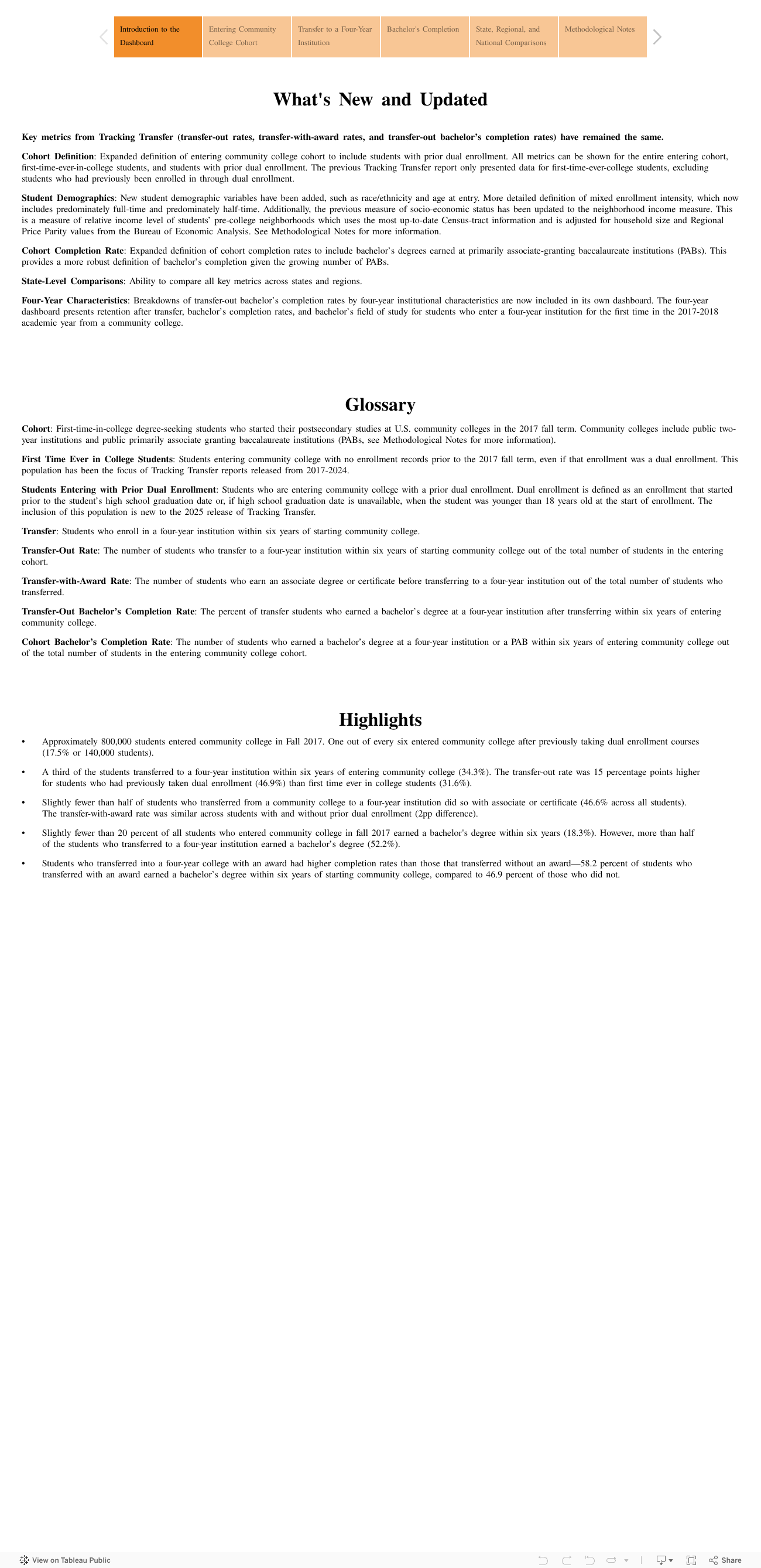 Tracking Transfer Entering Community College Cohort Dashboard Also see the Entering Four-Year College Cohort Dashboard